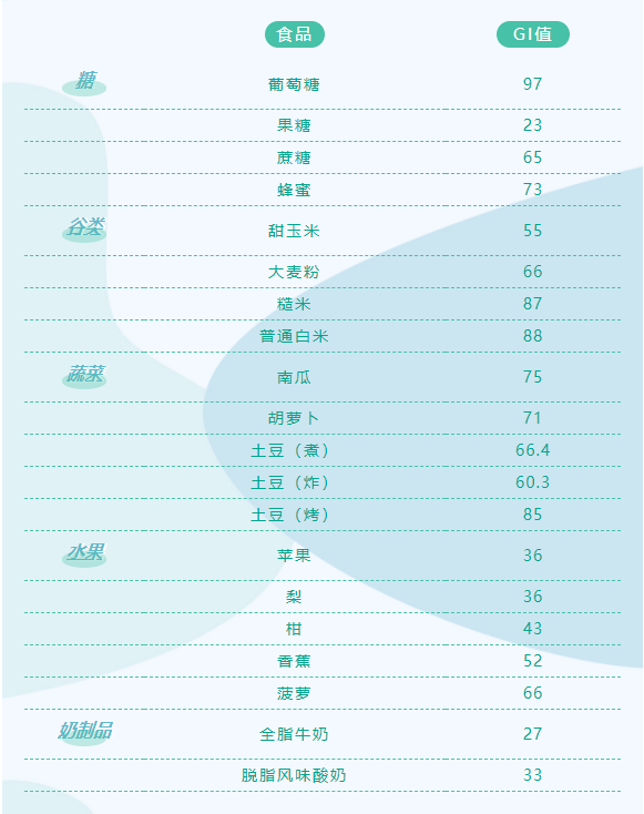 是不是發現了,含糖量較高的糖類及普通主食GI值一般都比較高,食物的烹飪方式也對GI值有一定影響。