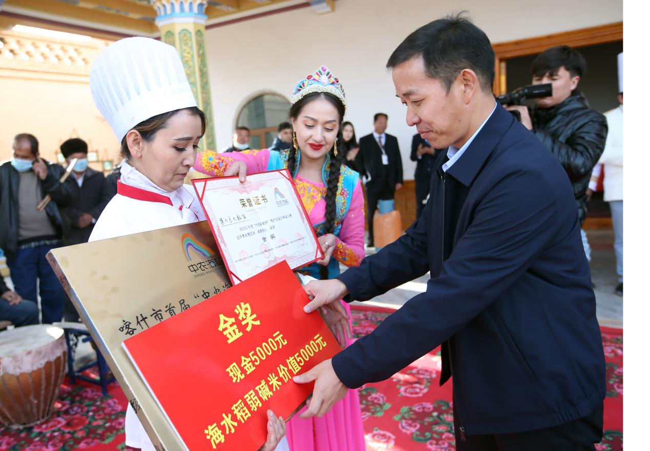 弘揚新疆美食文化,助力鄉村振興,11月16日,“中農海稻杯”首屆海水稻手抓飯決賽,在喀什帕哈太克里鄉稻香泉村成功舉辦。新疆喀什帕哈太克里鄉黨委書記李篤民、深圳援疆指揮部計劃財務處處長馬力、喀什地區農業農村局種業發展中心副主任吐爾洪江·比克阿吉、喀什地區旅游飯店協會會長李輝、喀什市文旅局喀什市文旅局產業中心副主任馬木提江·艾山、喀什市科學技術局辦公室主任古麗巴哈爾·阿布都熱合曼、喀什陽光保險集團喀什分公司總經理江顯英、新疆中農海稻生物科技有限公司總經理李強儒等人出席了本次活動。